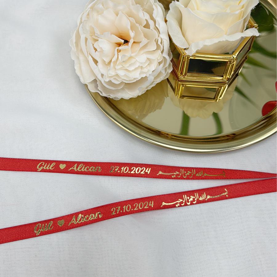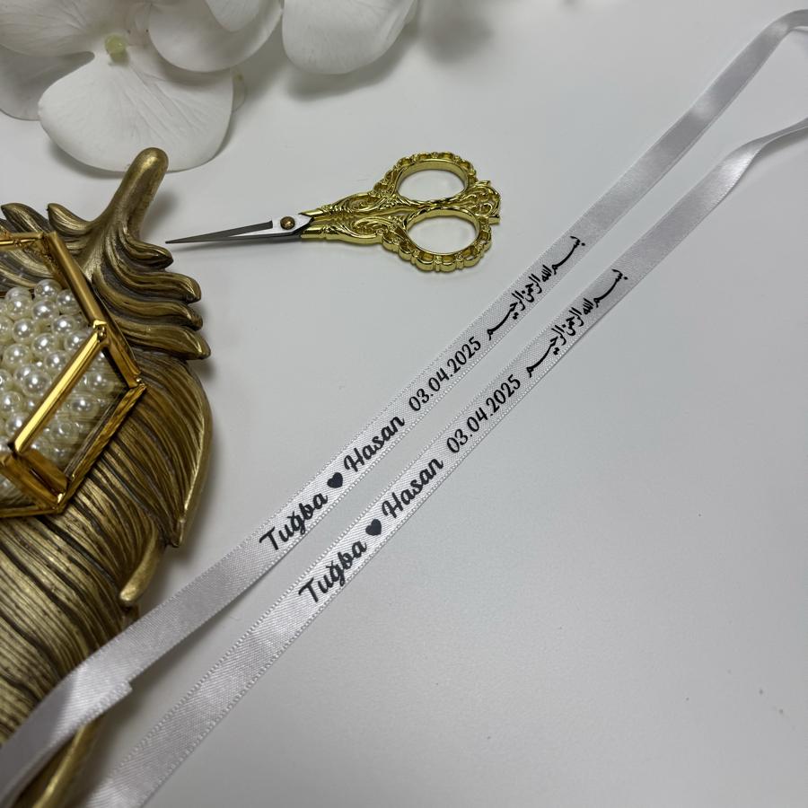 Besmele Detaylı Saten Yüzük Kurdelesi (En:1cm) (Model:2)
