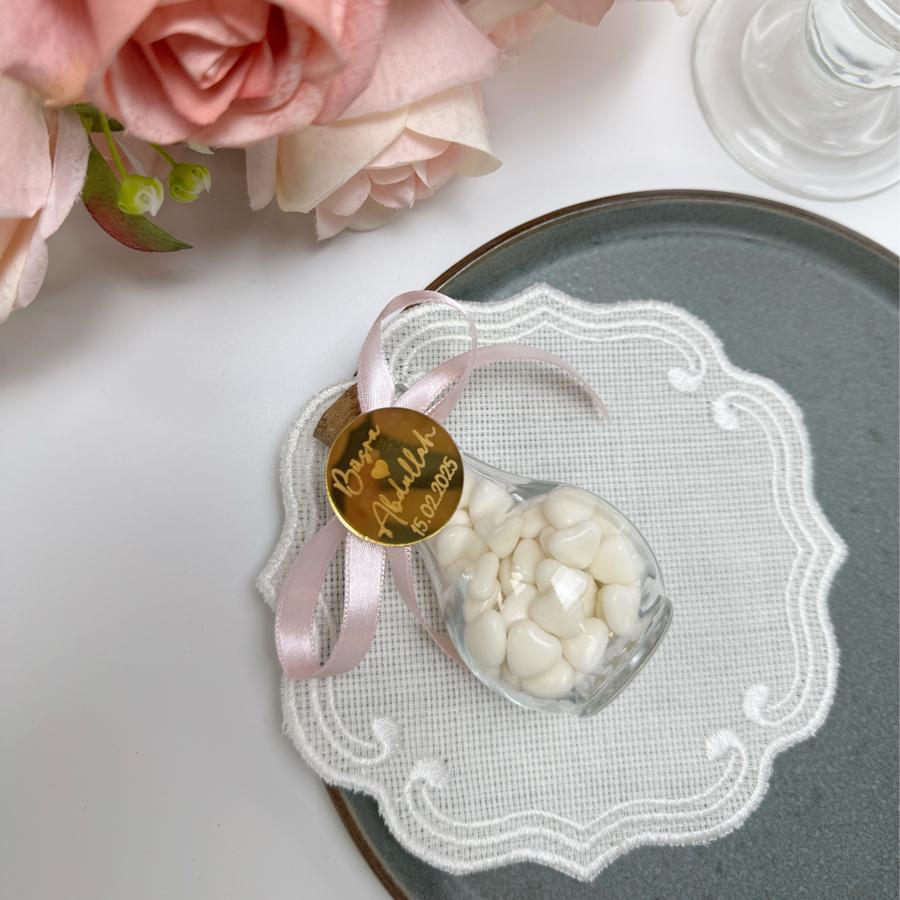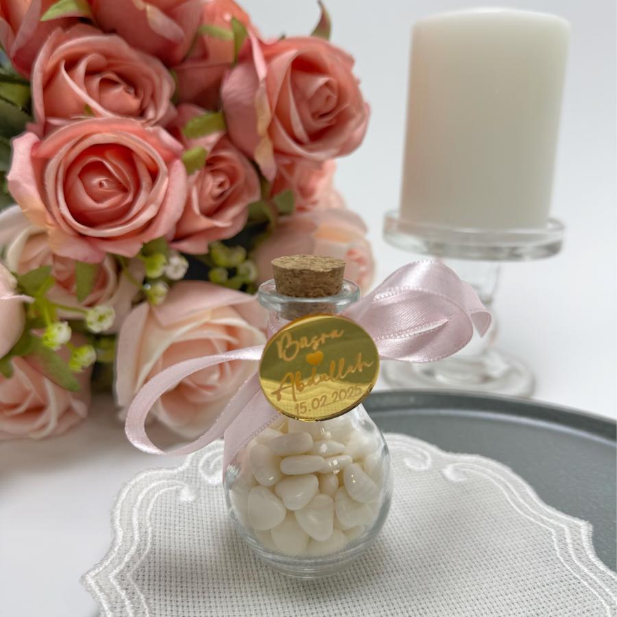 Cam Şişe Kalpli Nikah Şekeri (Pleksi İsimli)