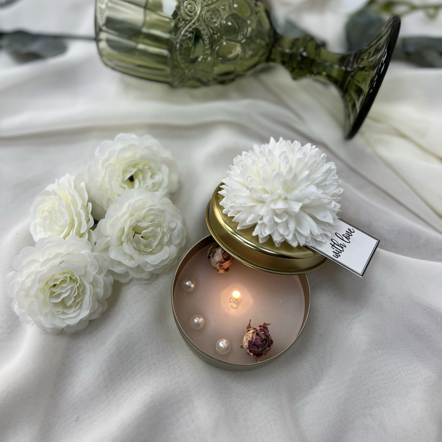 Çiçek Süslemeli Teneke Mum