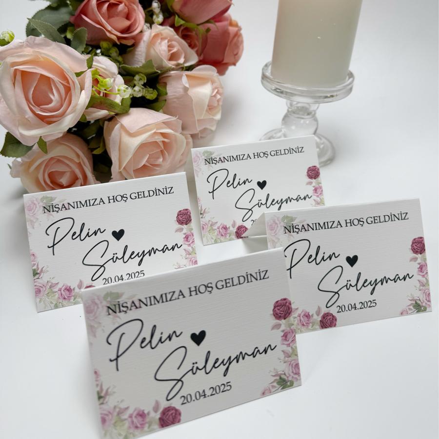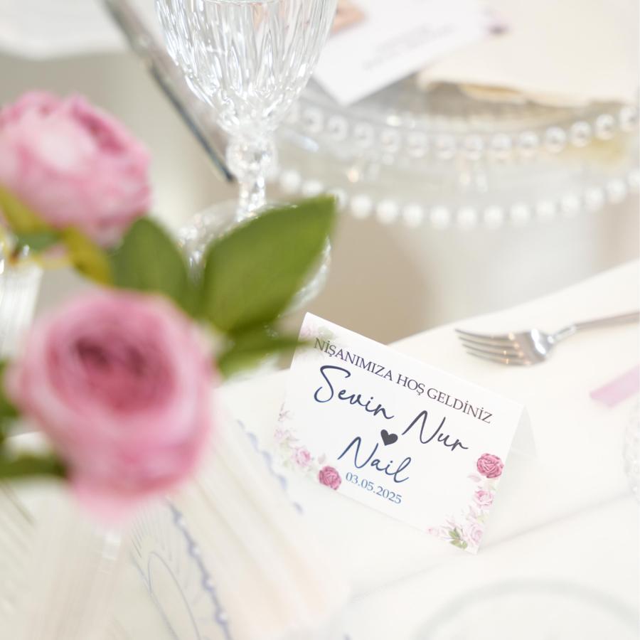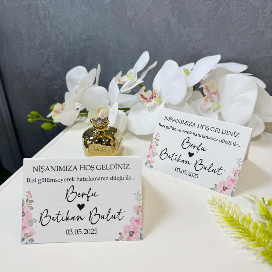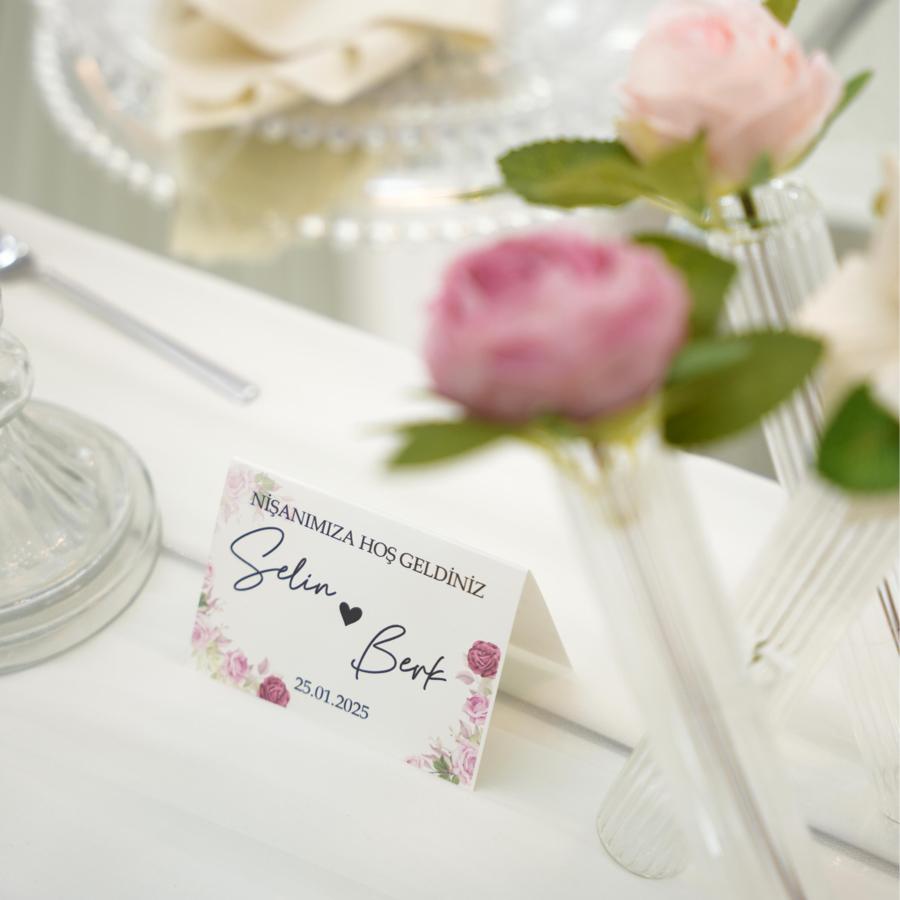 Çiçekli Masa Kartı (Renkli Baskı + Dokulu Kağıt)