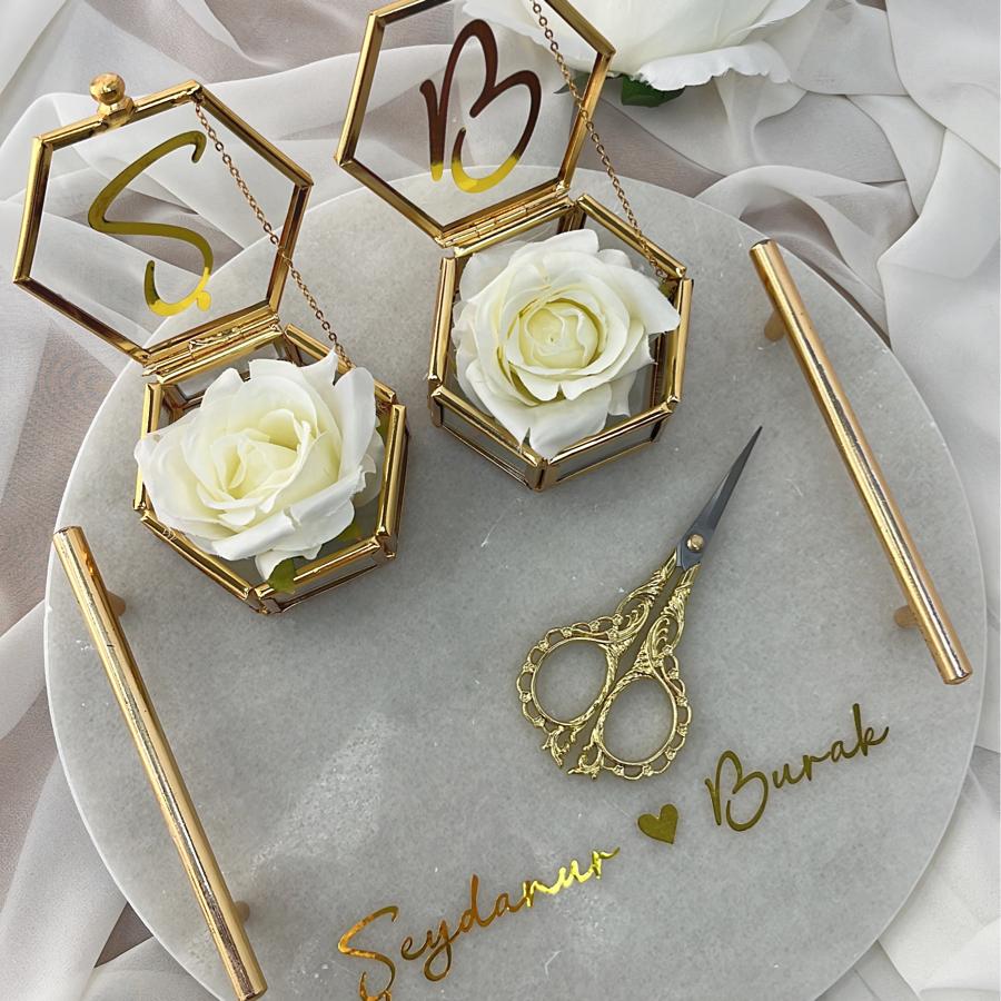 Gold Detaylı Yuvarlak Mermer Tepsi (İsim Baskılı)