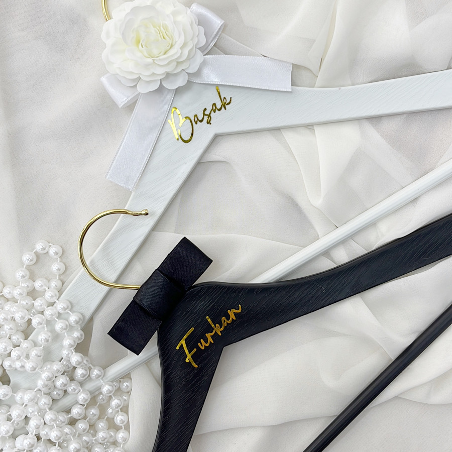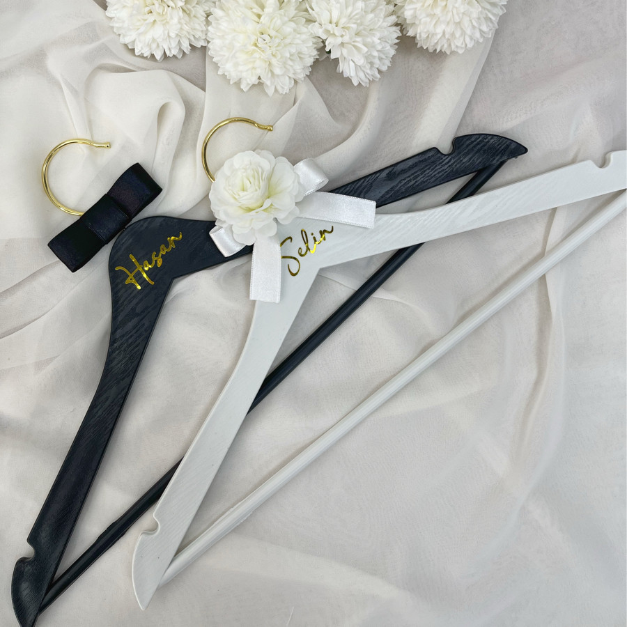 Gelinlik ve Damatlık için isme özel askılar.