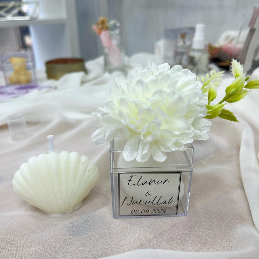 Mika kutulu İstiridye Mum (Yapay Çiçek Detaylı)