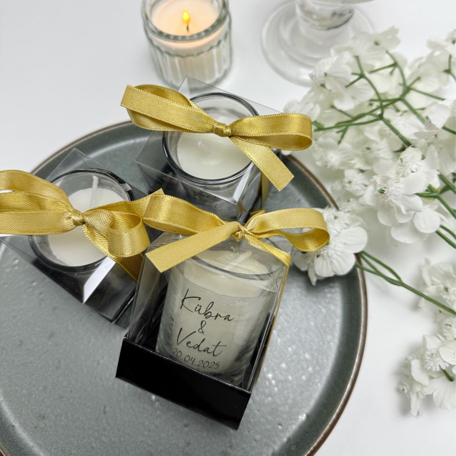 Şeffaf Kutulu Cam Bardak Mum Hediyelik (5x5x7)