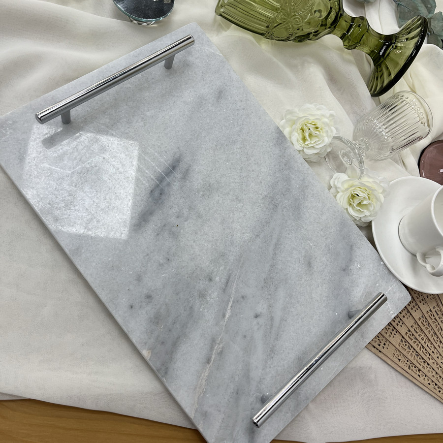 Silver Detaylı Dikdörtgen Mermer Tepsi (İsim Baskılı)